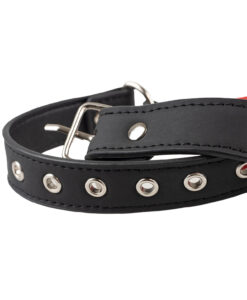 Body-safe silicone, non-porous, hypoallergenic, and free from nasties. The strap is adjustable faux leather with a metal buckle. May contain traces of nickel.